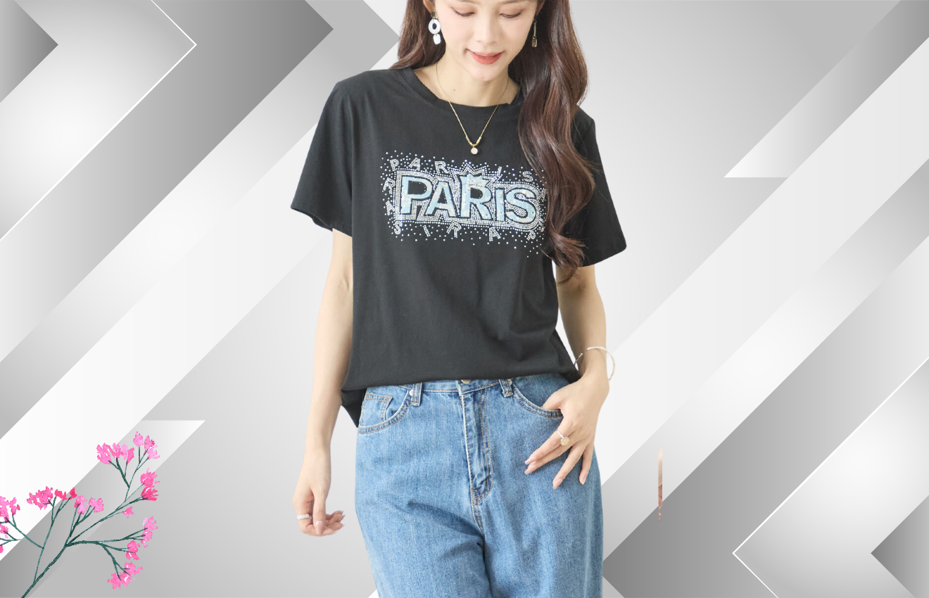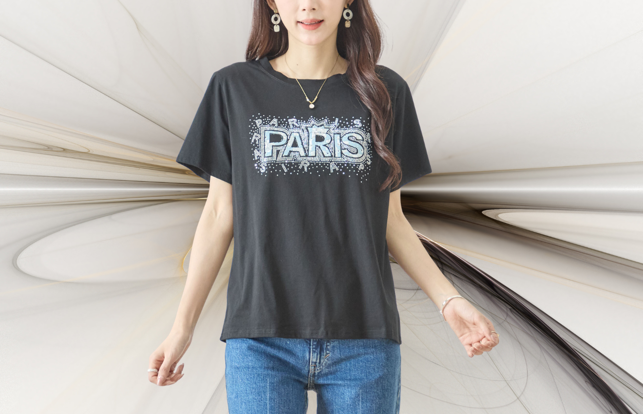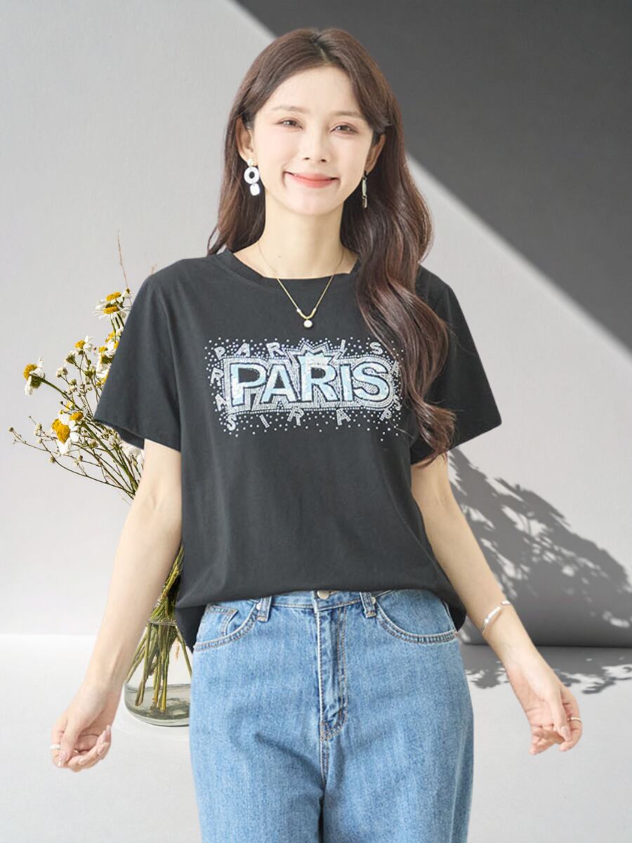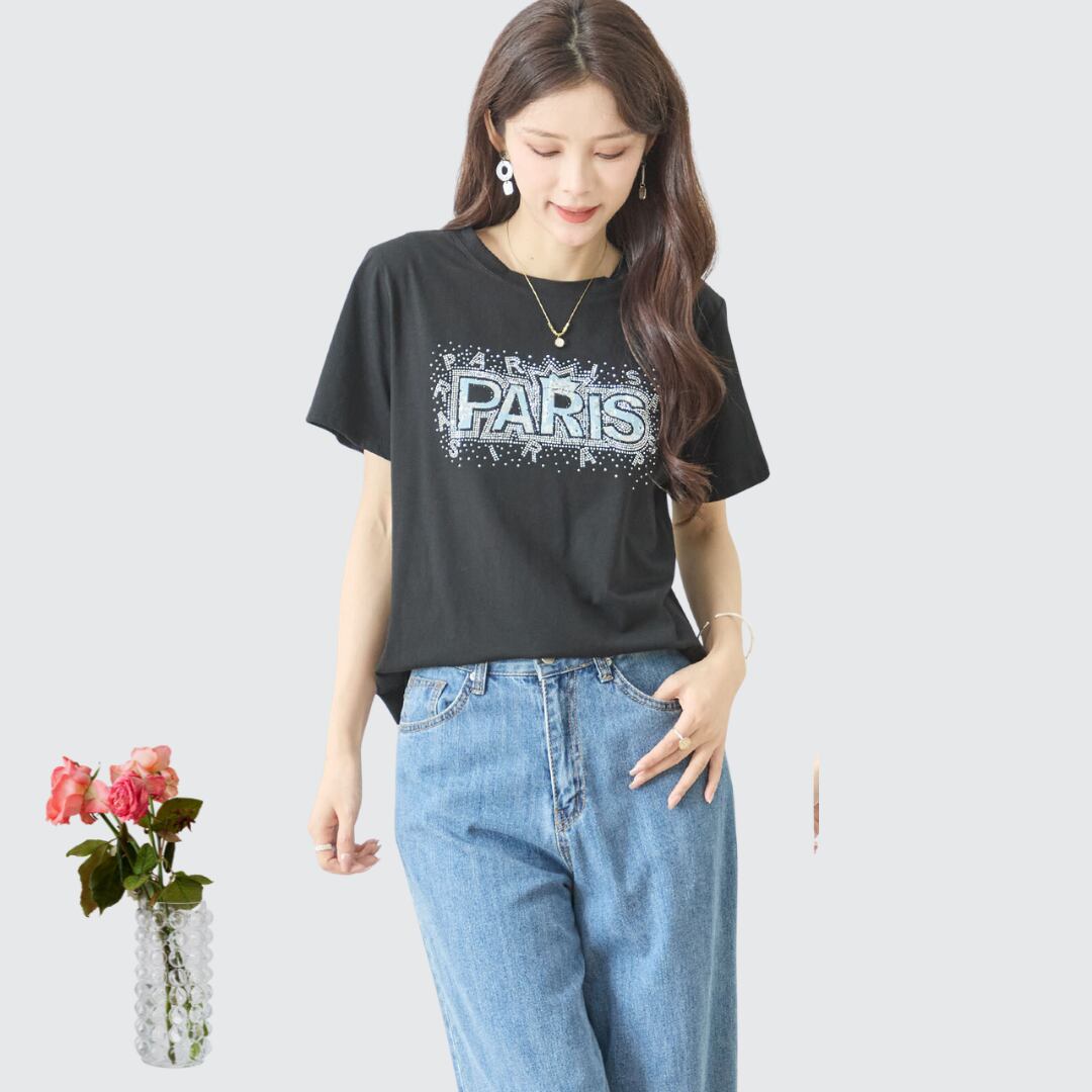 キーワード:#Tシャツ #PARIS #ブラック #スパンコール #ラインストーン #カジュアル #おしゃれ #スタイリング #春夏
