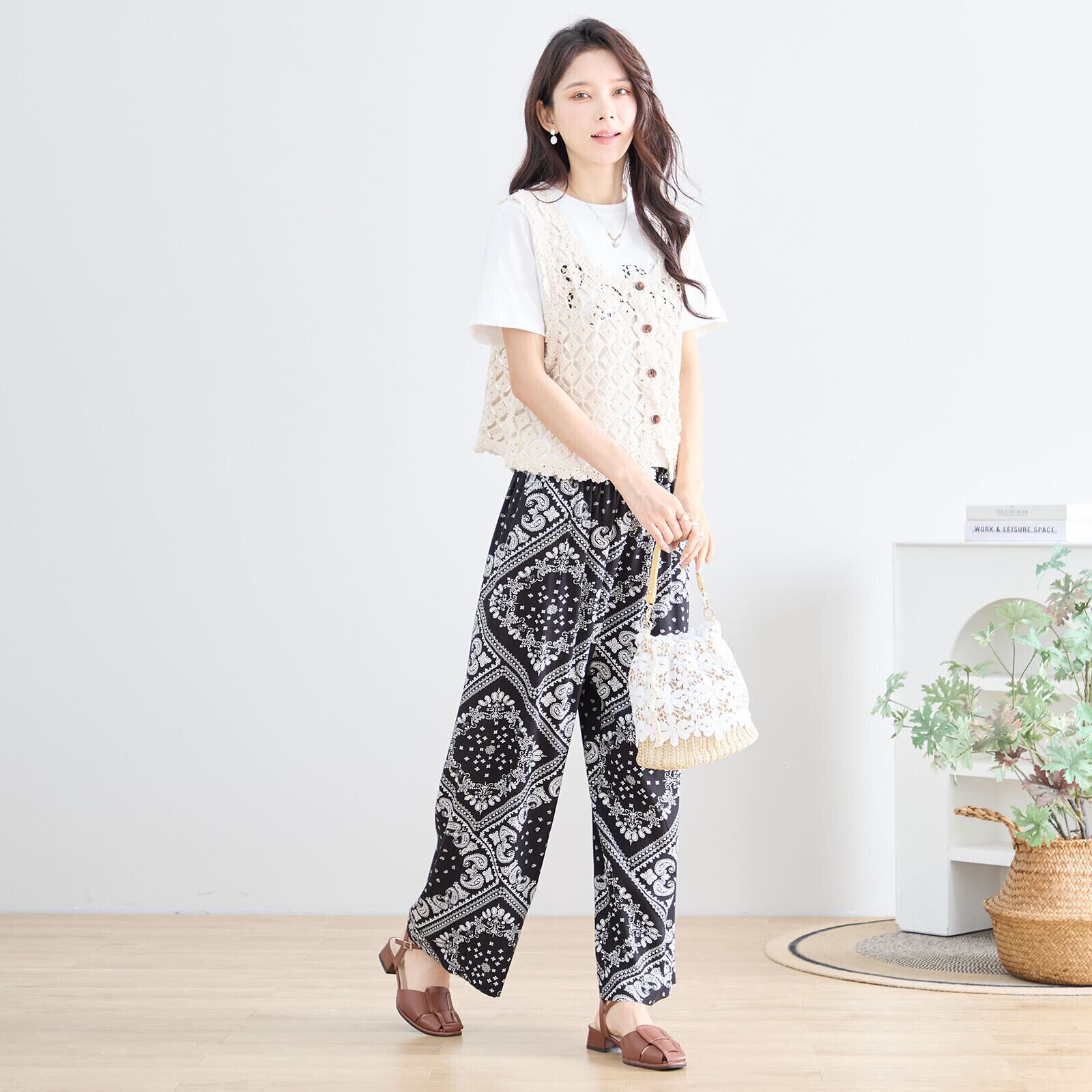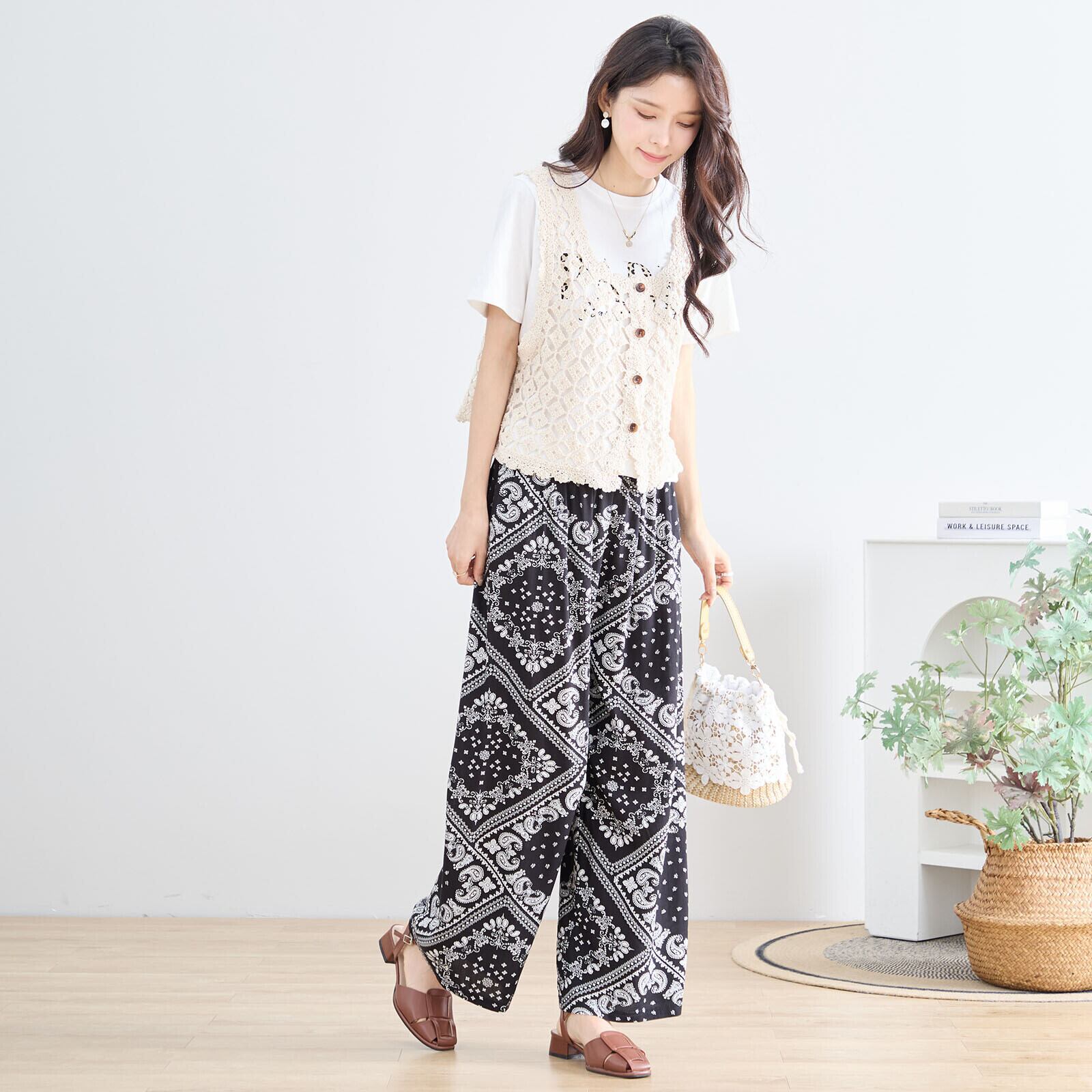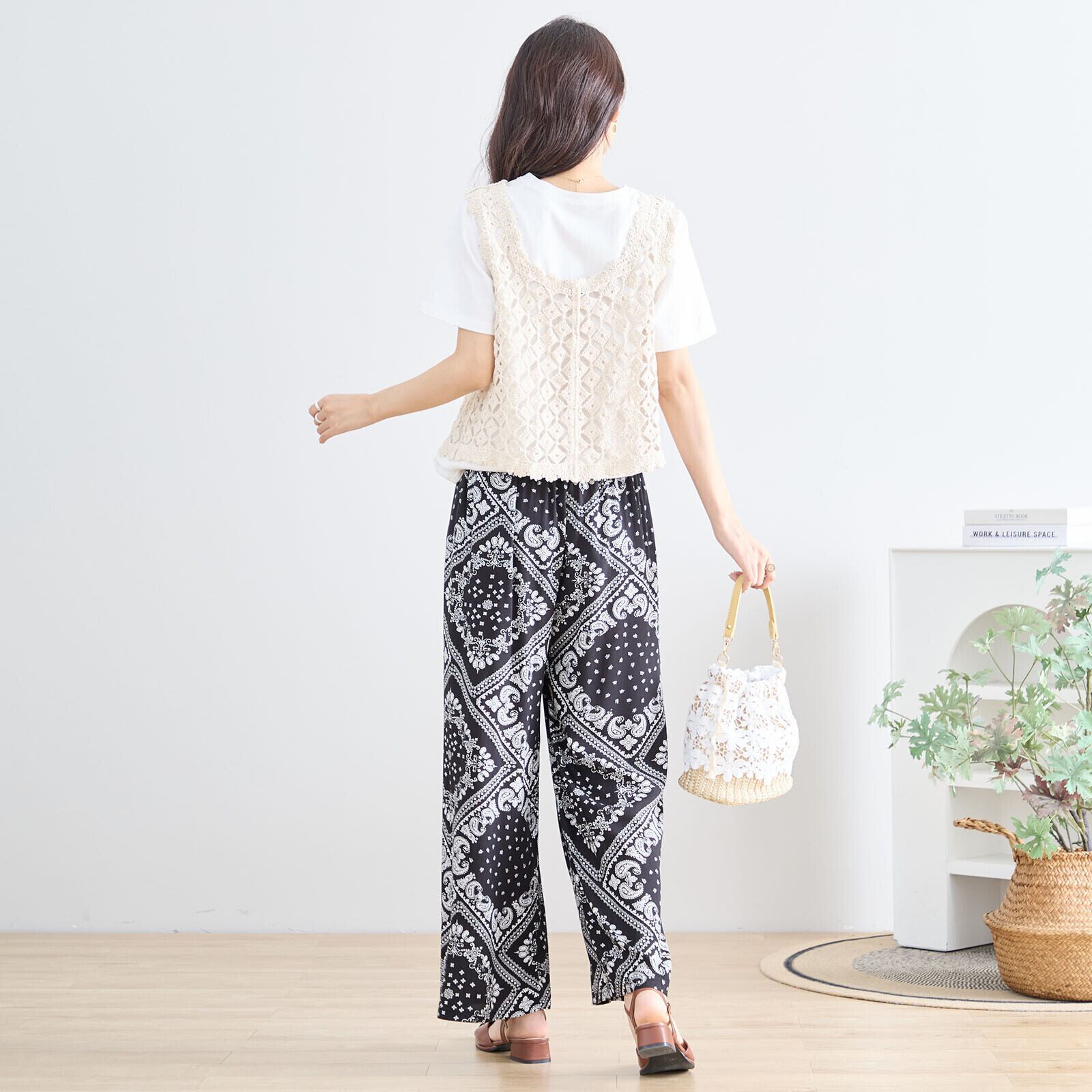 キーワード:#パンツ #ブラック #バンダナ #ペイズリー #カジュアル #リラックス #モード #春夏