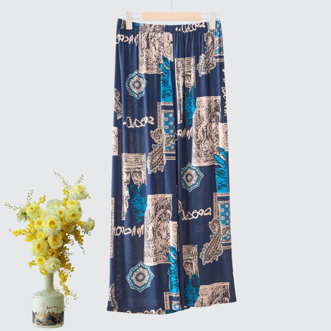 TRUBE アートプリントリラックスワイドパンツ【M~L】ネイビー