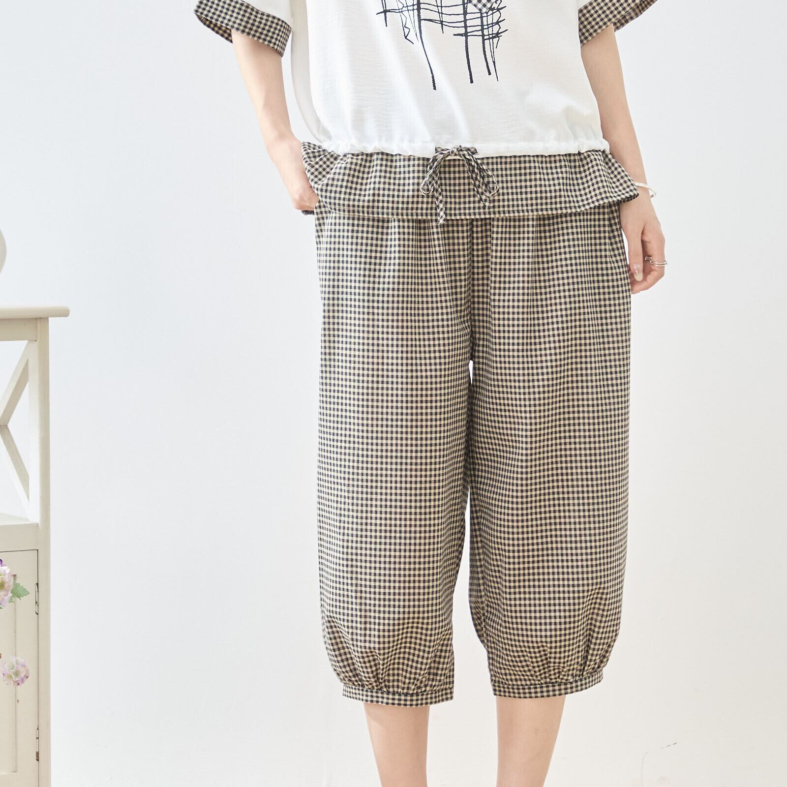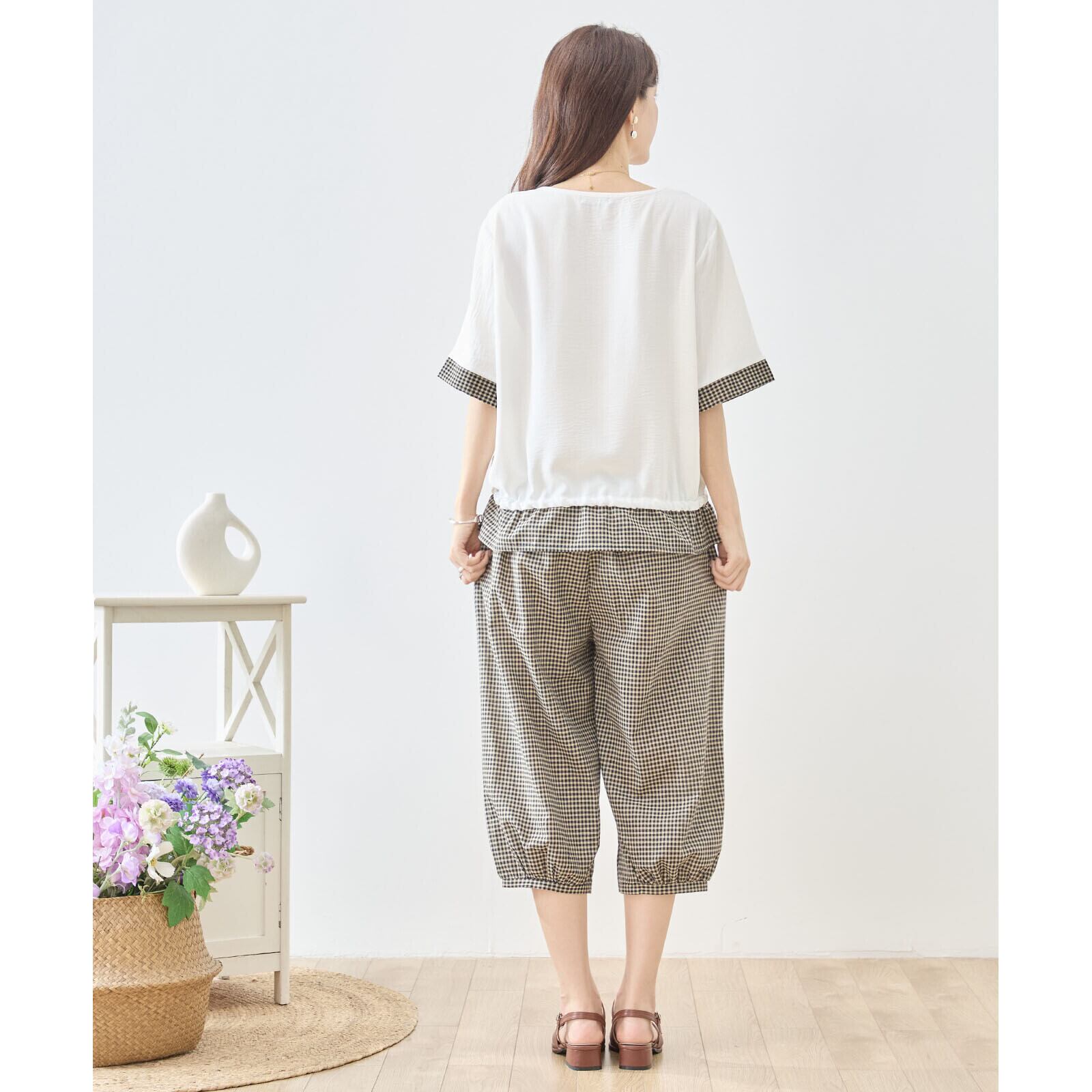 ギンガムチェックのコクーンパンツがひとセットになった、