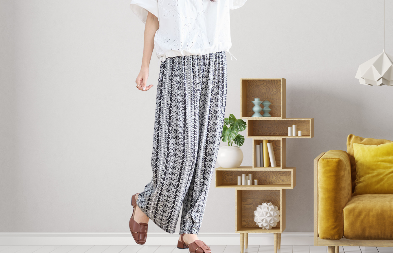 さらっとした軽やかな素材感とウエストゴム仕様で、