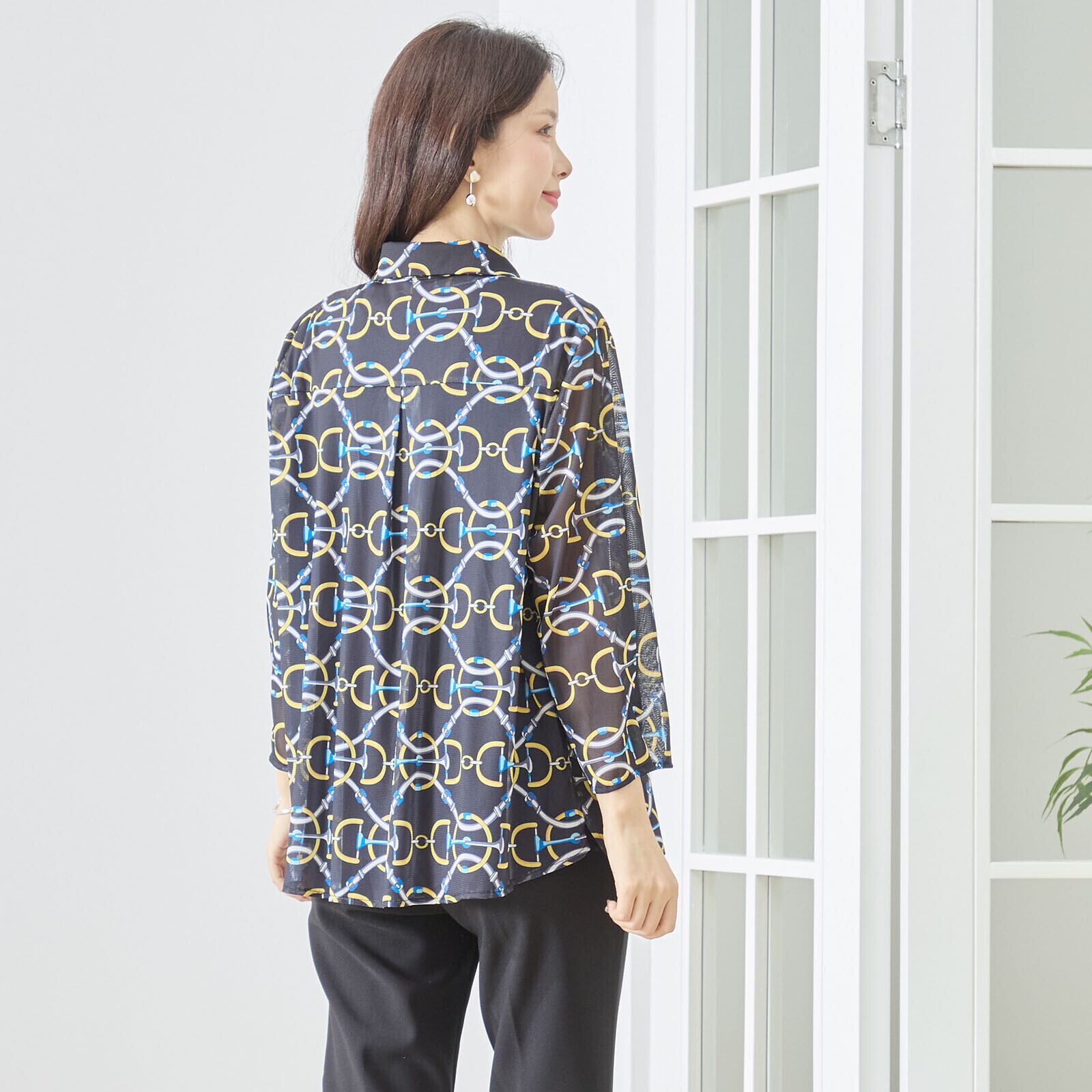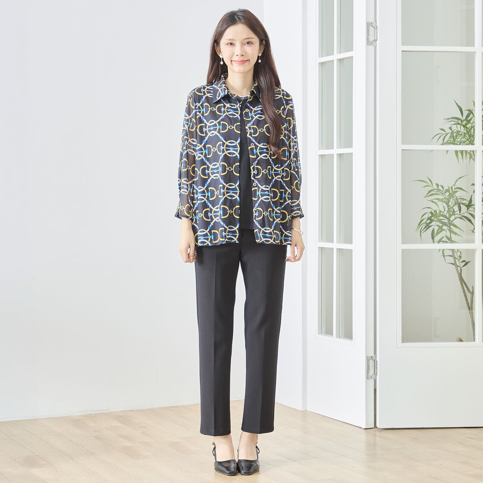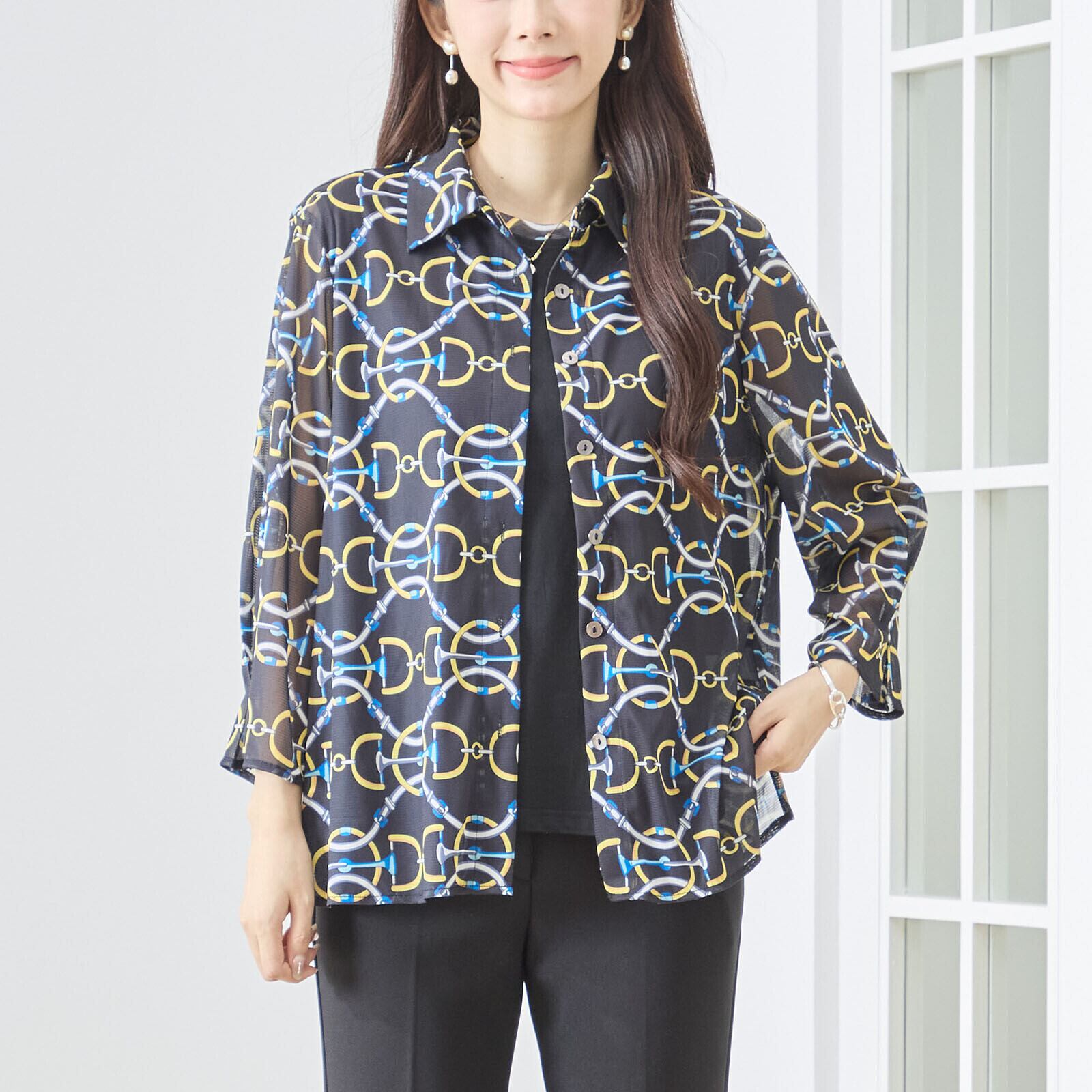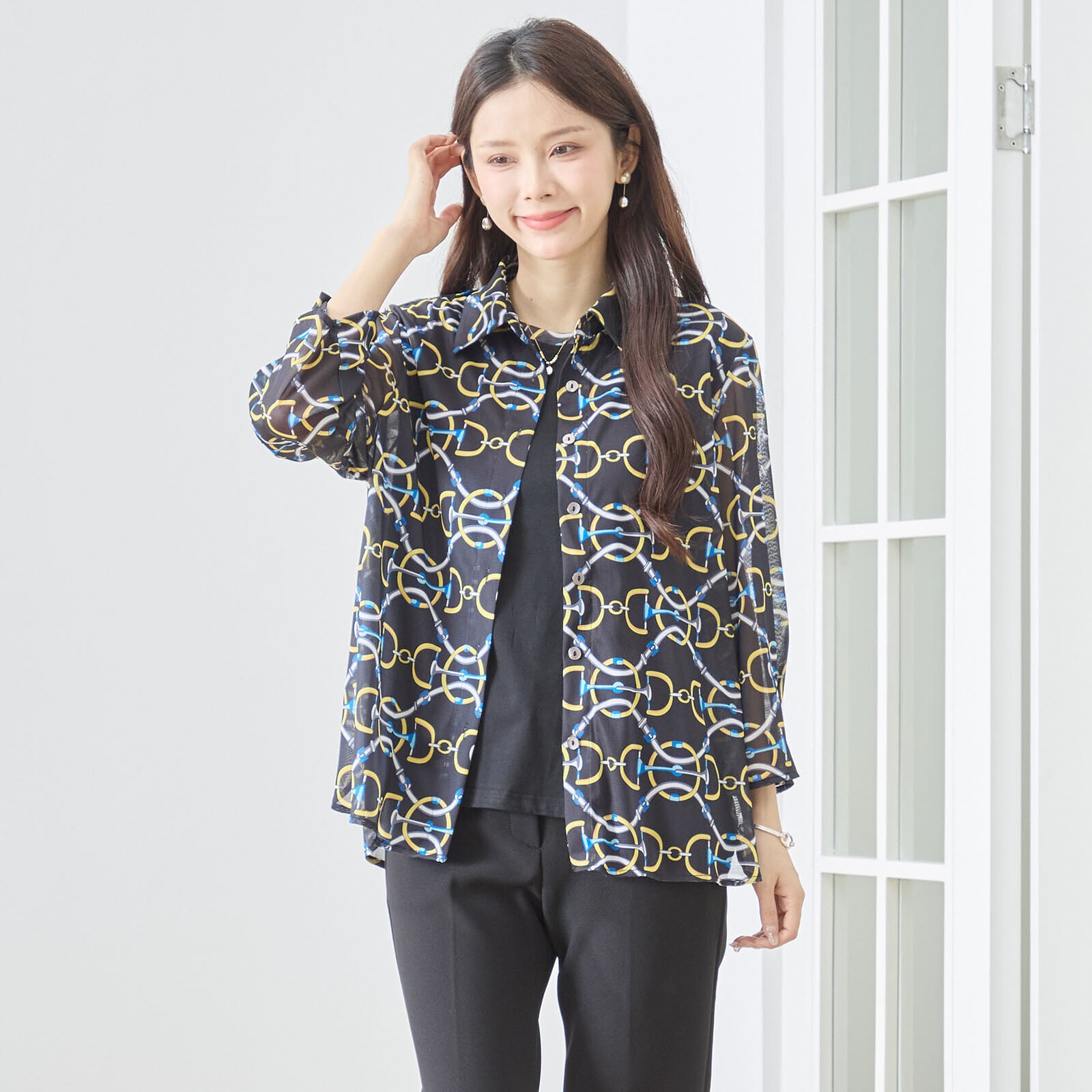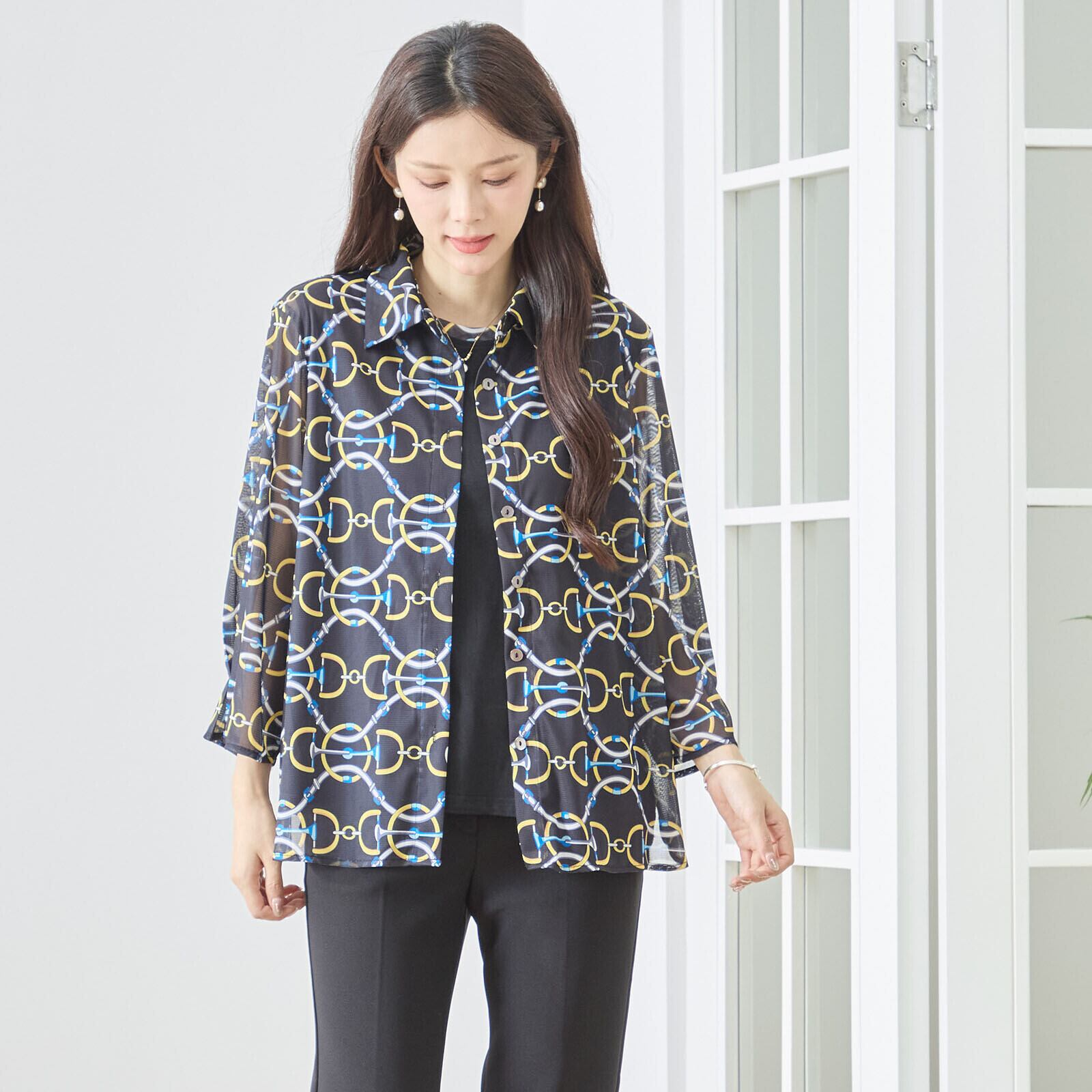 TRUBE シアー柄シャツアンサンブル【L~LL】ブラック