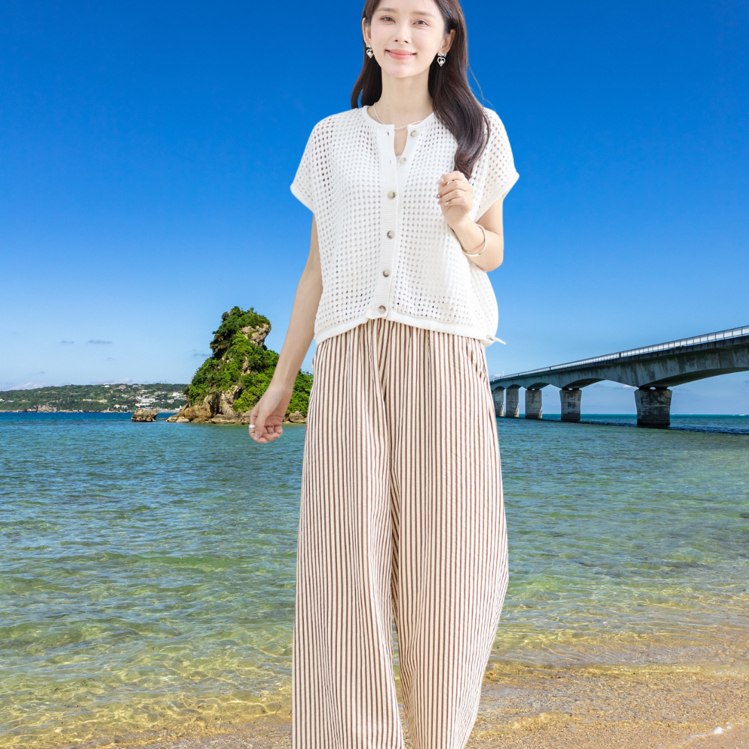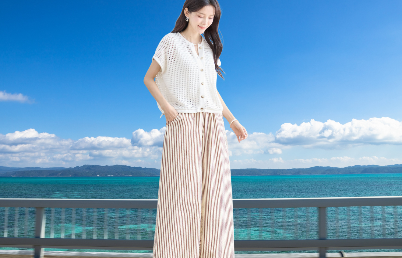 軽やかな素材感とストライプ柄が涼しげな印象を与える、