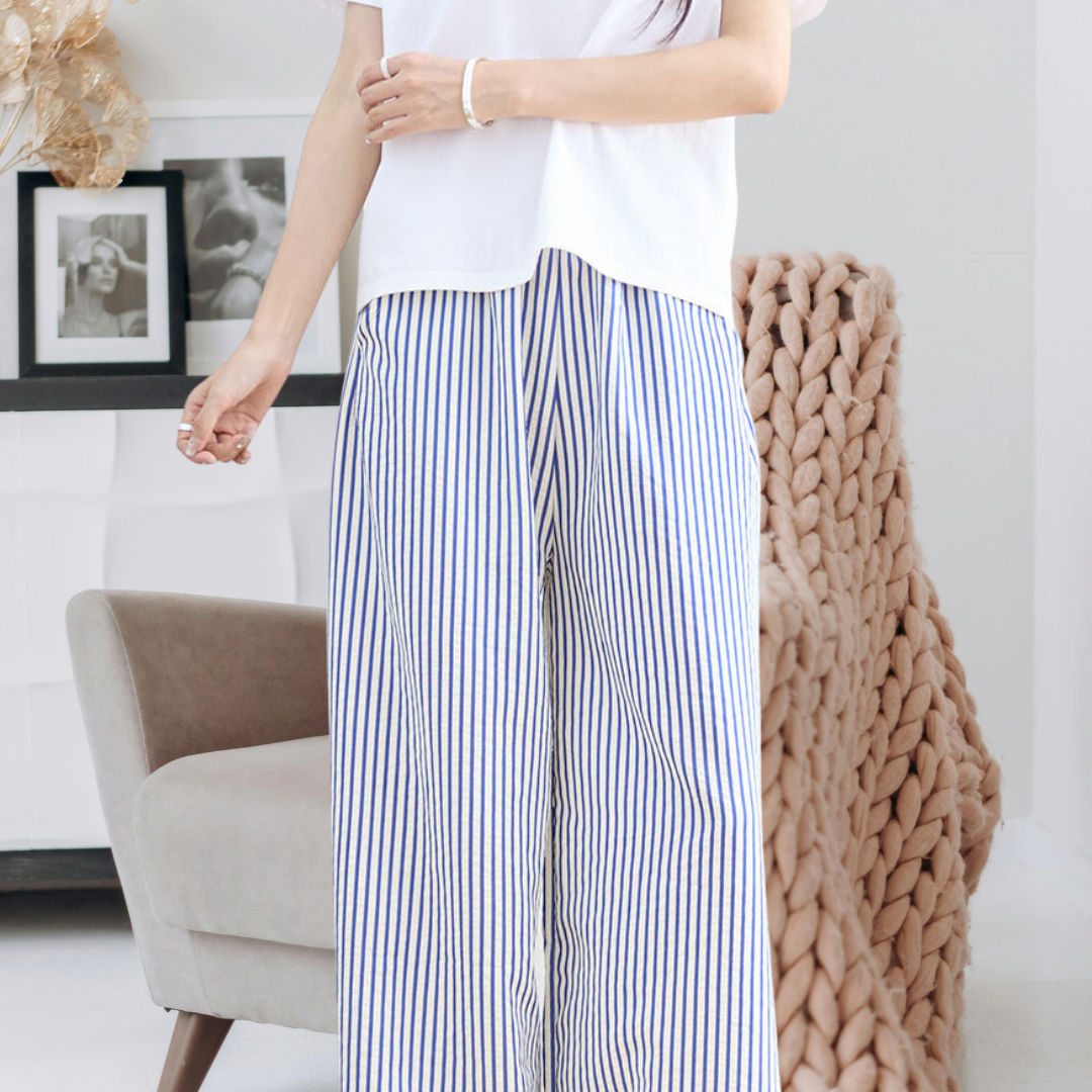 キーワード:#パンツ #ネイビー #ストライプ #リラックス #ワイドパンツ #デイリーユース #特別な日 #ポケット付き