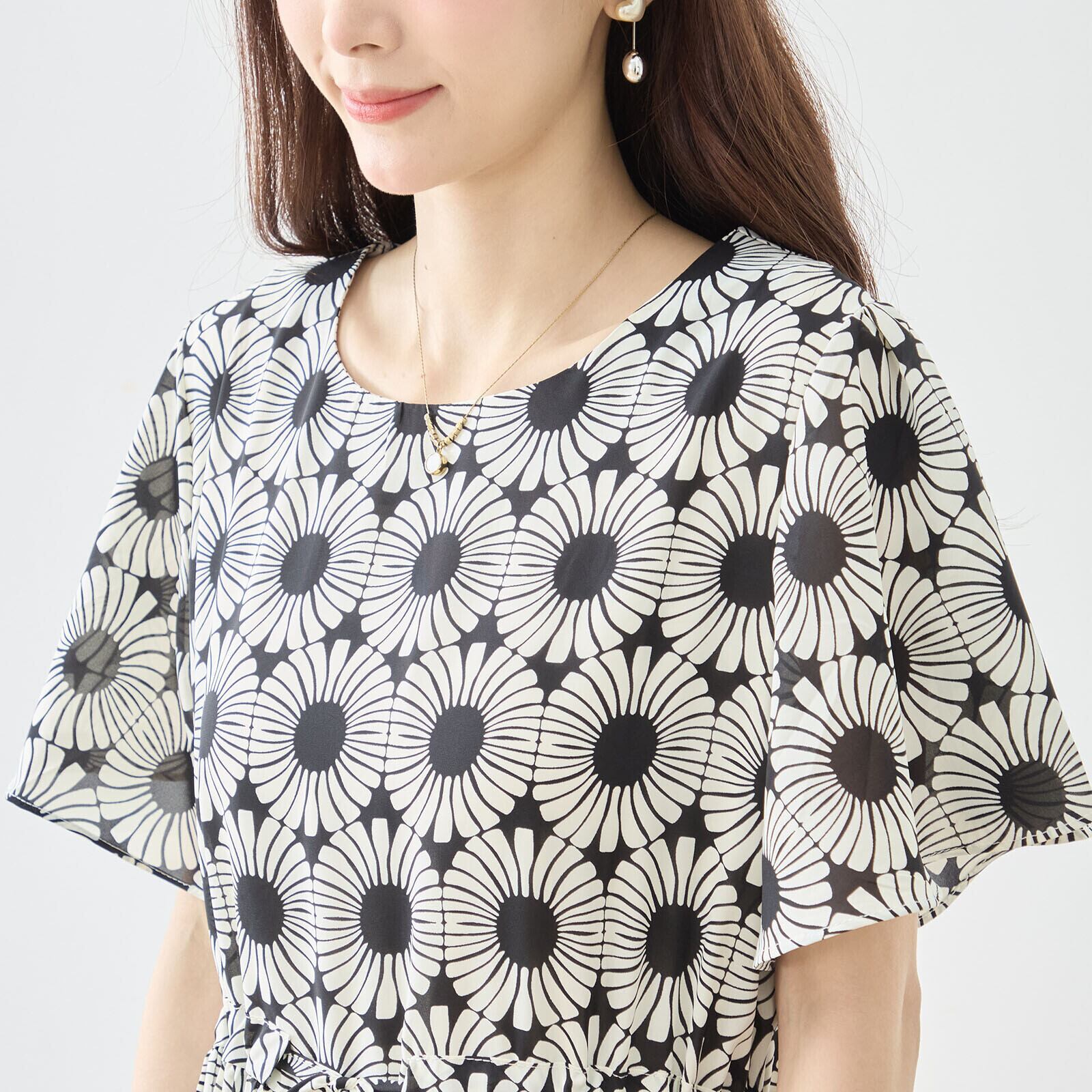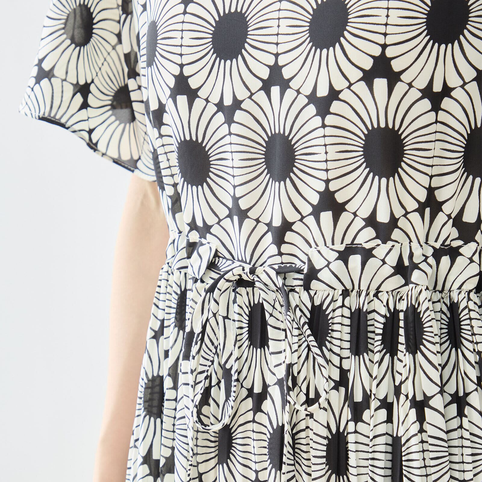 TRUBE ジオメトリック総柄ウエストギャザーワンピース【M~L】ブラック