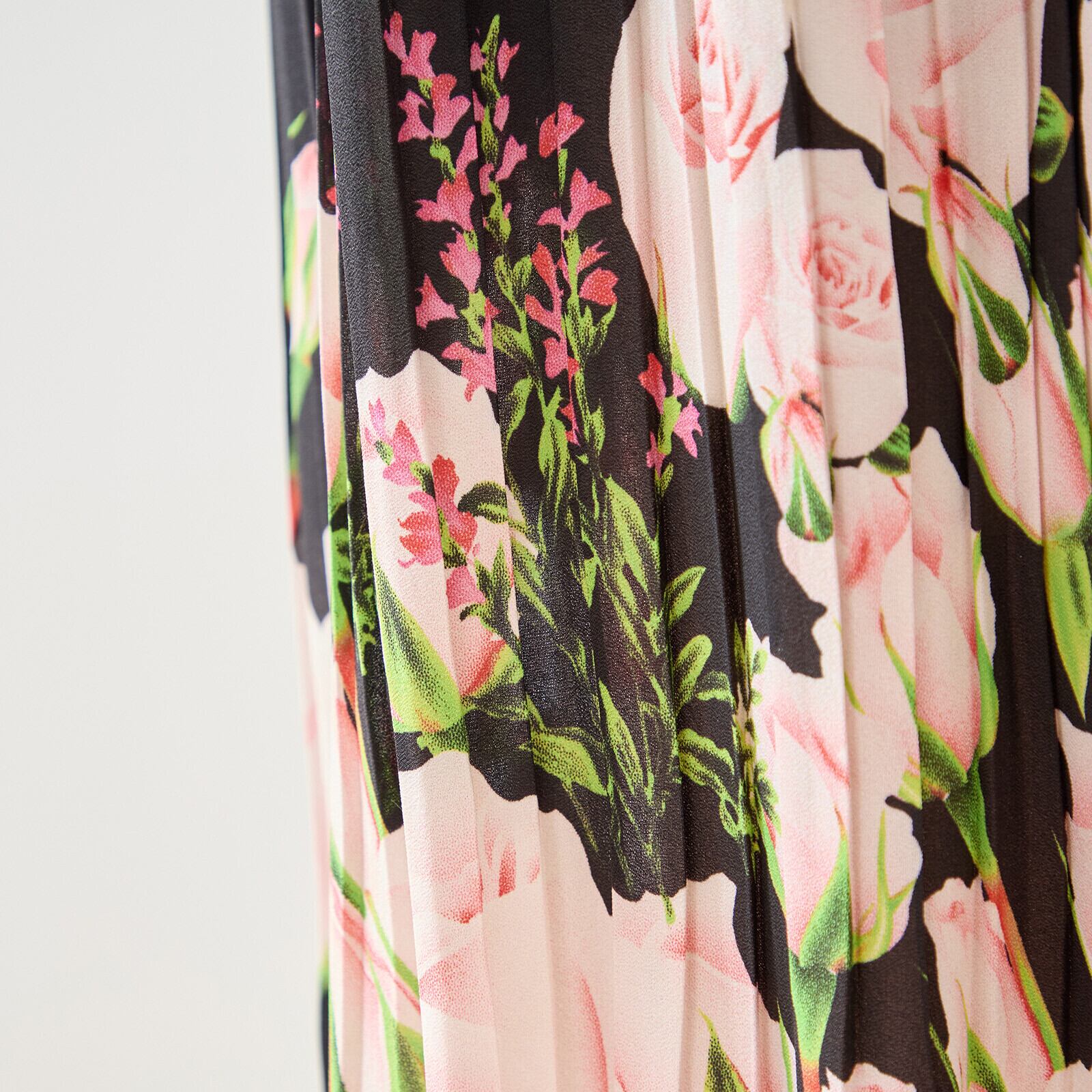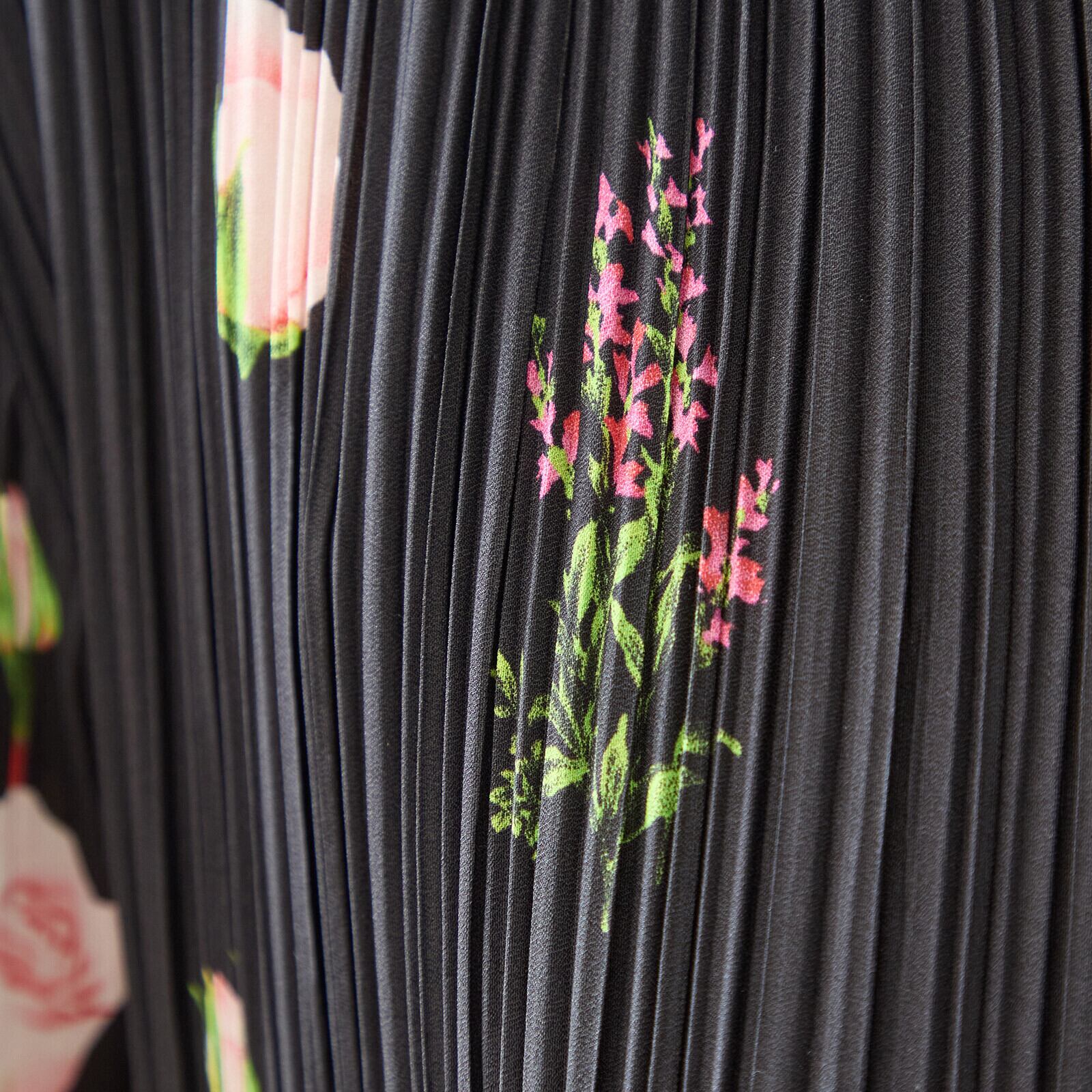TRUBE バラ花柄プリントプリーツVネックワンピース【M~L】ブラック