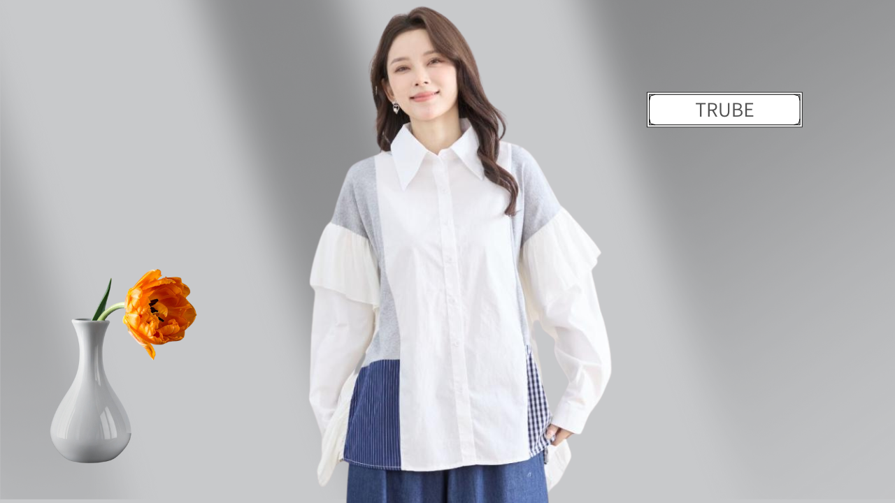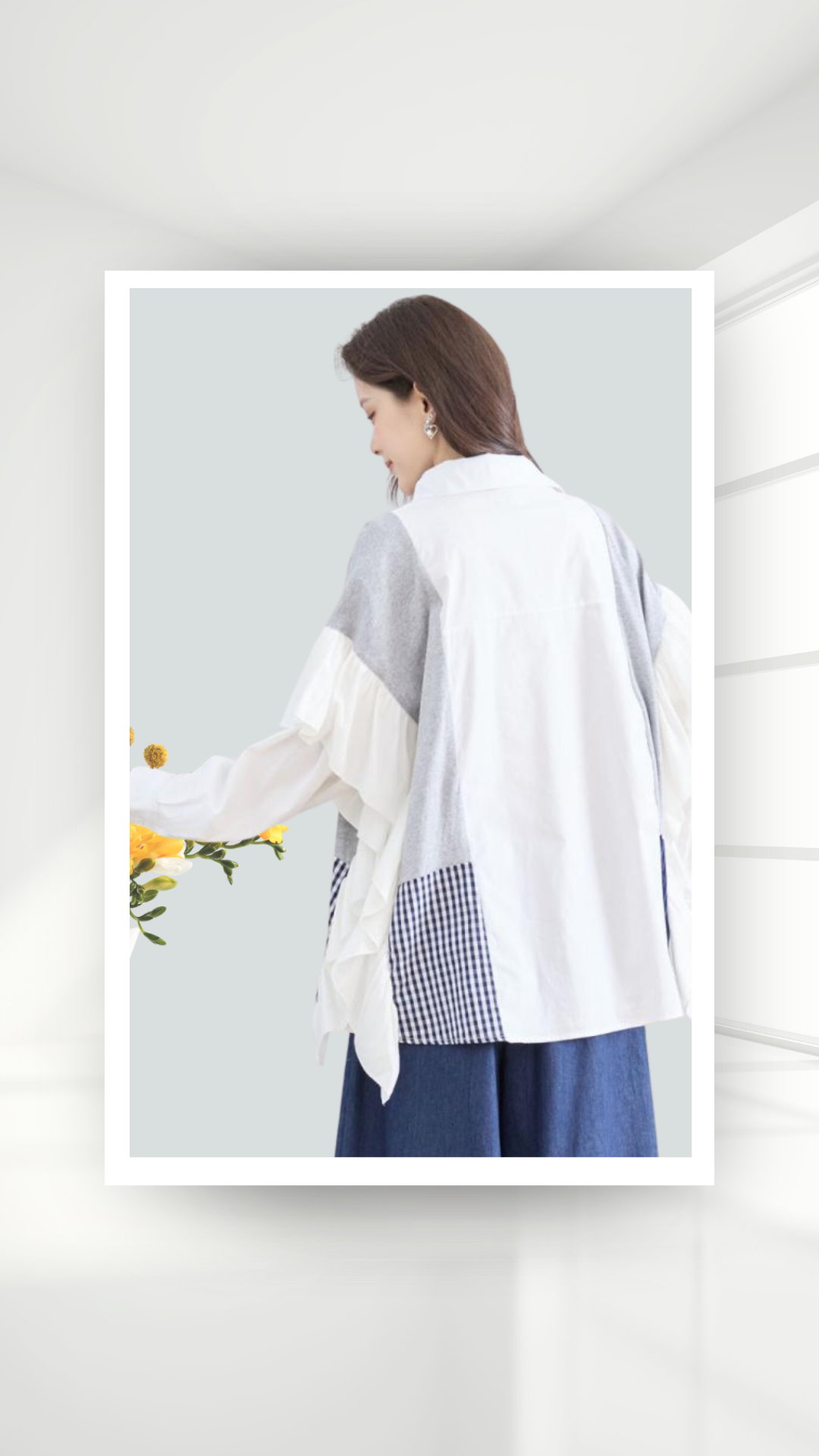 キーワード:デザインシャツ レディースファッション 綿 コットン ゆったり ラッフル 2025S